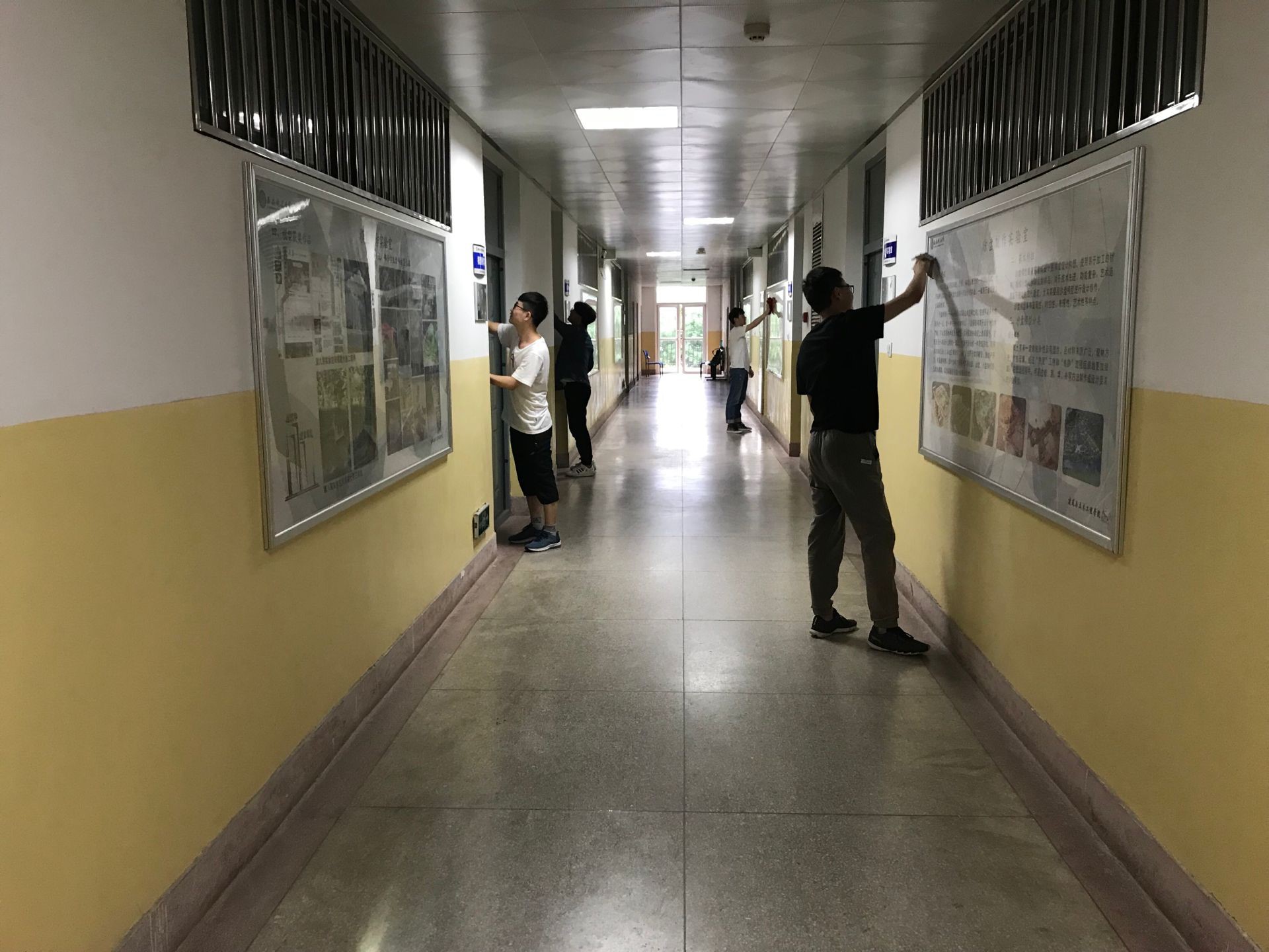 劳动现场热火朝天,有的用扫把清扫垃圾、有的用抹布清洁展板,还有的用手捡拾角落的废纸。大家不怕脏、不怕累,干劲十足,1个小时的劳动,实验室、会议室、党员之家、宣传栏等被清理的干干净净,走廊、大厅变得一尘不染,大家感到劳有所获。